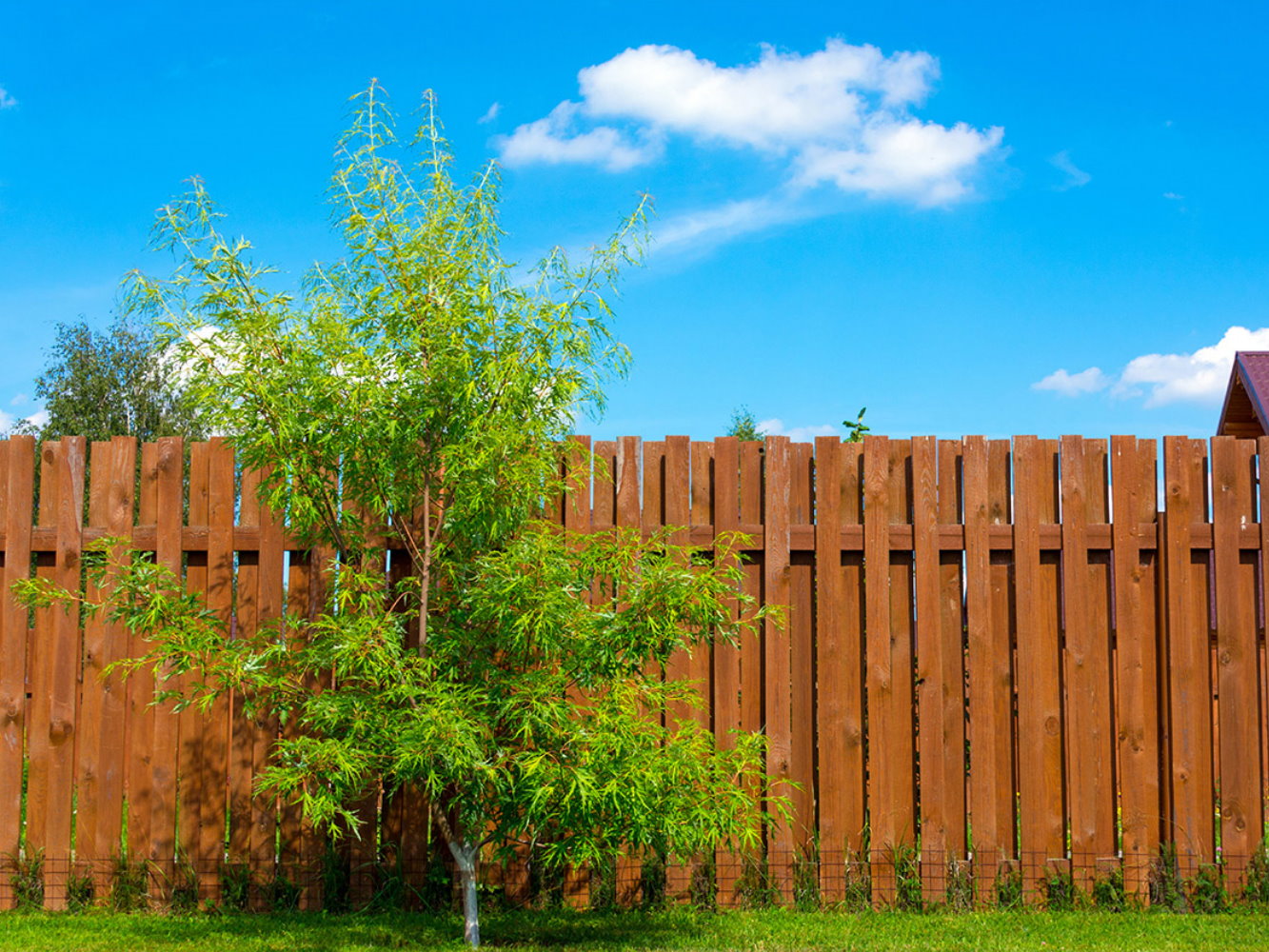 A traditional style, the stockade wood fence is a common choice because of its no-frills solution to privacy.