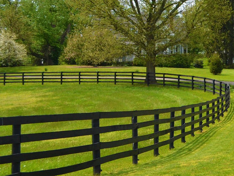 Establish the borders of your property or enclose a large space, such as a farm or park, with a split rail wood fence.